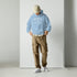 • Double-needle stitched collar, shoulders, armholes, cuffs, and hem