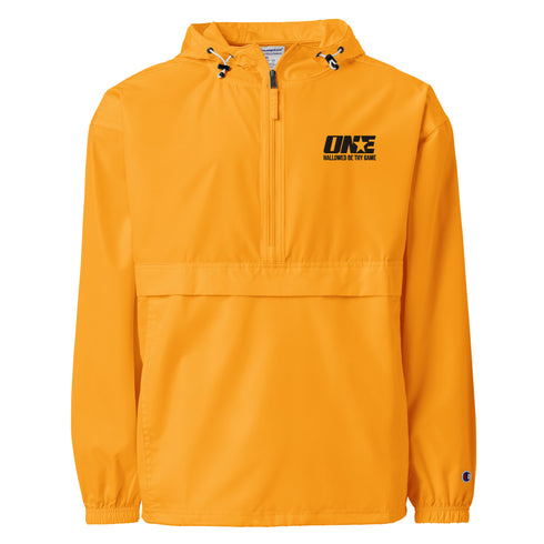 Protect yourself from the elements with this Champion packable jacket. This wind and rain resistant polyester jacket with a detailed embroidery design has a practical hood, front kangaroo pocket, and zipped pouch pocket which you can pull out and use to scrunch the jacket into for convenient storage.
