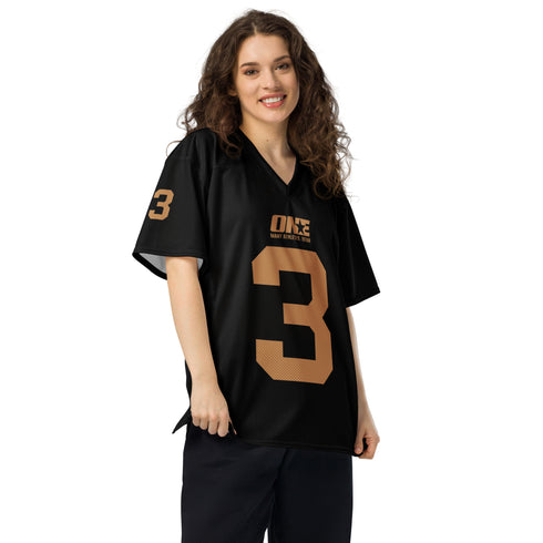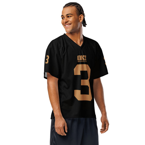 Made to move. Marked to lead. This jersey isn’t just performance wear, it’s a symbol of divine assignment. The golden “3” nods to the Trinity, reminding you that your strength, strategy, and spirit are backed by heaven. Whether you're on the field or off it, the M1 cut speaks to mission-first living: bold, disciplined, and anchored in grace. Lightweight, breathable, and purpose-built—this is for the athlete who plays with excellence and lives with eternal perspective. Hallowed Be Thy Game.