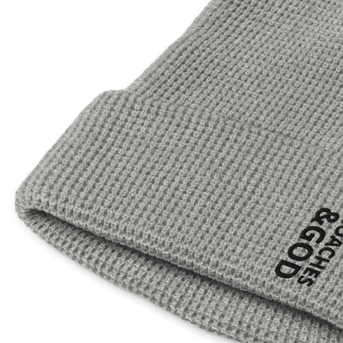 Made with a unique honeycomb-like weave, our &GOD waffle beanie comes with an adjustable cuff and flexible material and guaranteed to fit snugly on your head.